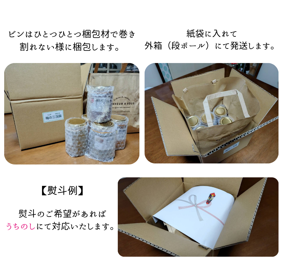 ばあちゃんの味「完熟南高梅干」※500g×2パック (熨斗対応可) 昔ながらの製法でつくった梅農家自慢の梅干し国東市国見町の梅農家、田辺さんの梅干しです。大粒の南高梅を使って、塩だけで丁寧につけた昔ながらの梅干し。食べた人がなつかしい~と思わず口にする梅干しです。樹上で完熟が進み、良い香りがし始め黄色になる頃の梅を漬けます。南高梅自体に少し甘みがあるので味もしっかり、塩味もしっかりしているのでぜひ白ご飯と一緒にお召し上がりください。※開封後も常温保存でお願いします。※容器サイズは15cm×15cm×6cmです。 販売価格 3,000円(税込み) 会員価格 (税込み) 通常価格 (税込み) 在庫 商品コード k-00799 JANコード 数量 - + カートに入れる カテゴリー 梅干し、漬物 商品容量梅干し500g×2パック原材料名梅(大分県国東市国見町産)、塩賞味期限 パッケージに記載(約1年)※製造状況や在庫状況により上記と異なる場合がございます。予めご了承ください。提供(製造者)梅の三渓園/田辺良子(大分県国東市国見町櫛見2046番地6) ツイートする シェアする