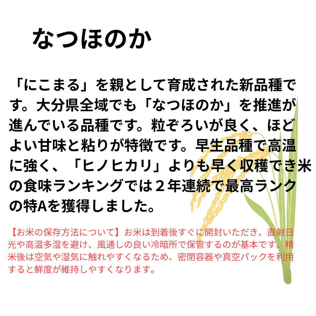 大分県国東産なつほのか20kg(5kg×4袋) 夏の高温に強い やさしい甘味とほのかな香りが自慢の新しい大分のお米です「なつほのか」は令和4年より大分県で本格導入された品種です。「米の食味ランキング」で2年連続で最高評価の「特A」を獲得しました。蔵本さんは減農薬栽培で10年以上前から安全・安心を心がけて栽培しています。耕すと田にいる虫や蛙をサギが取りにやってくるほど、田んぼは自然に近い状態です。国東の美味しいお米をぜひご賞味ください。【ご案内】ご注文の際に必ず「精米」か「玄米」かをお選びください。精米をご希望の方はご注文時にご選択ください。精米をすると1割ほど減量します。(糠分減量します)精米の場合は、ご注文から発送までに1週間程お時間をいただきますがご了承ください。精米したてをお送りしますのでご了承ください。 販売価格 19,400円(税込み) 会員価格 (税込み) 通常価格 (税込み) 在庫 商品コード k-00942 JANコード お米の状態 精米 玄米 数量 - + カートに入れる カテゴリー 米 販売期間 2025/11/10 09:00~ 商品容量精米5kg×4袋/銘柄(なつほのか)※令和7年産米産 地大分県国東市産アレルギー-提 供蔵本農園(大分県国東市国東町浜4243) ツイートする シェアする