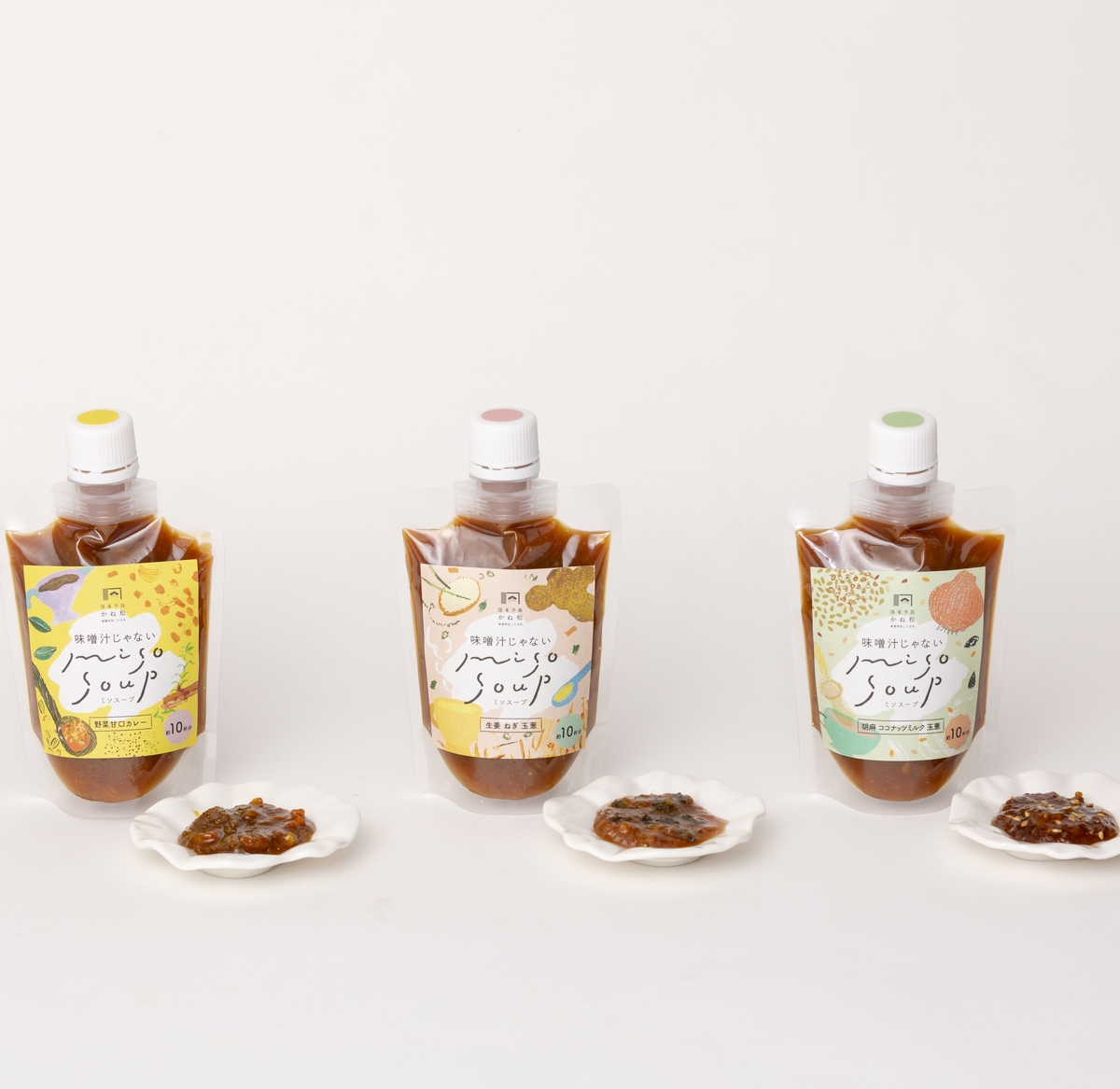 味噌汁じゃないミソスープシリーズ/生姜ねぎ玉葱・野菜甘口カレー・胡麻ココナッツ玉葱(3種)インスタント味噌スープ 味噌汁じゃないミソスープ一味違う出汁と素材に工夫を凝らした味噌風味スープ明治25年創業の手作り味噌と醤油の老舗・安永醸造がお届けする、味噌汁じゃないミソスープは全部で3種類。お湯を注ぐだけで手軽にお好みのスープが完成します。忙しい朝やお昼のお弁当のお供に。また、ミソスープのみでなく普段のお料理の調味料としてもお使いいただけるようレシピも同封いたします。ちょっとしたギフトにもおすすめです! *お召し上がり方 スープ1杯分(目安) 味噌大さじ1杯とお湯180ml~200mlを混ぜるだけ。 開封後も常温にて保存いただけます。 販売価格 1,950円(税込み) 会員価格 (税込み) 通常価格 (税込み) 在庫 商品コード k-00955 JANコード 数量 - + カートに入れる カテゴリー みそ、醤油、出汁、調味料の詰合わせ 商品名:味噌汁じゃないミソスープ/生姜ねぎ玉葱・野菜甘口カレー・胡麻ココナッツ玉葱 内容量:150g×各1名称:味噌加工品原材料:<生姜ねぎ玉葱>味噌(国内製造)、砂糖、塩、発酵調味料、還元水飴、生姜、ガラスープ、乾燥玉葱、粉末生姜、ねぎ/調味料(アミノ酸等)、(一部に大豆・鶏肉を含む)<野菜甘口カレー>味噌(国内製造)、砂糖、塩、発酵調味料、還元水飴、中華だし(食塩、ポークエキス、野菜エキス、食用油脂、オイスターエキス、デキストリン、ゼラチン、チキンエキス、香辛料、酵母エキス調味料、酵母エキス)、乾燥人参、カレー粉、乾燥玉葱粉/調味料(アミノ酸等)、(一部に大豆・牛肉・鶏肉・豚肉・ゼラチンを含む)<胡麻ココナッツ玉葱>味噌(国内製造)、砂糖、塩、発酵調味料、還元水飴、中華だし(食塩、ポークエキス、野菜エキス、食用油脂、オイスターエキス、デキストリン、ゼラチン、チキンエキス、香辛料、酵母エキス調味料、酵母エキス)、乾燥玉葱、胡麻、ココナッツミルクパウダー、胡麻油/調味料(アミノ酸等)、カゼインナトリウム、(一部に乳成分・大豆・胡麻・牛肉・鶏肉・豚肉・ゼラチンを含む)賞味期限:180日※直射日光、高温多湿を避けて、常温で保存して下さい。製造:安永醸造有限会社/大分県国東市武蔵町古市628 ツイートする シェアする