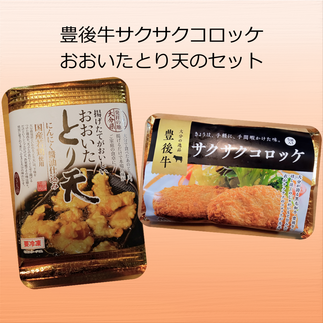 おおいた名物とり天&豊後牛さくさくコロッケ/計900gセット※揚げるだけでプロ顔負けの味をお楽しみ! おおいた名物「とり天」を500gと豊後牛サクサクコロッケ80g×5個セットでお届けします。商品は大分県の鶏むね肉を下味をつけた衣に漬け込んでおり、自然解凍後、180度の油で2~3分揚げるだけと調理も簡単です。鶏むね肉のとり天はジューシーで柔らかく、冷めても衣はサクサク感をキープ。そのまま何も付けずに揚げたてをお召し上がり頂くのがオススメですが、付属のかぼすポン酢で食べるのもオススメです!コロッケは、豊後牛ミンチとじゃがいもや野菜の旨みがマッチしてサクサク、ホクホク。お弁当のおかずにもご利用いただけます。この機会に、是非ご賞味ください。 販売価格 2,200円(税込み) 会員価格 (税込み) 通常価格 (税込み) 在庫 商品コード k-00531 JANコード 数量 - + カートに入れる カテゴリー 鶏肉 商品容量おおいた名物とり天(業務用500g×1P)※かぼすポン酢/小袋タイプ付属コロッケ(未加熱)80g×5個賞味期限製造日から冷凍180日アレルギー鶏肉、大豆、卵、小麦提供大分航空ターミナル株式会社(大分県国東市安岐町下原13番地) ツイートする シェアする